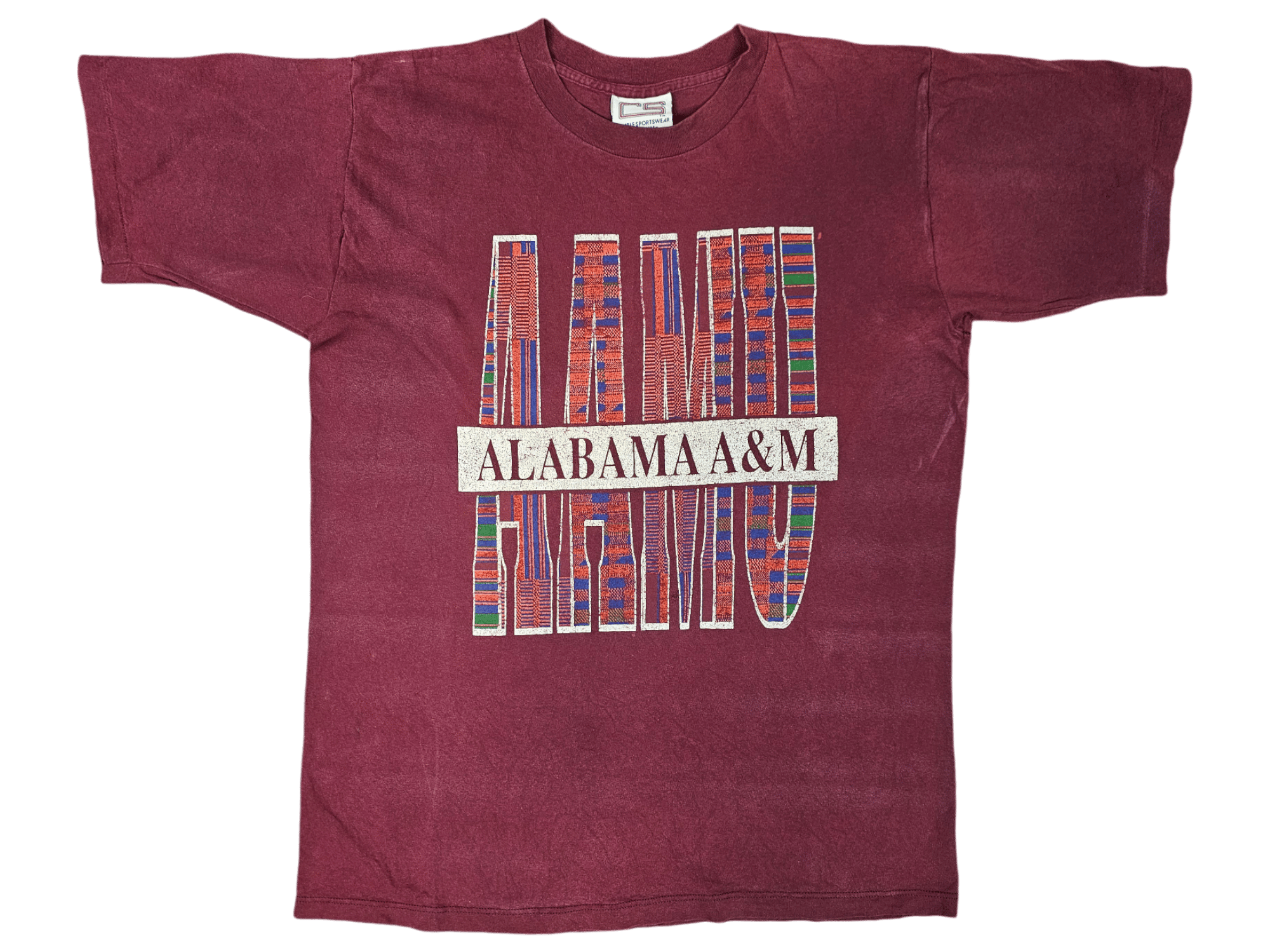 Vntg Alabama A&M University kente cloth words T-shirt